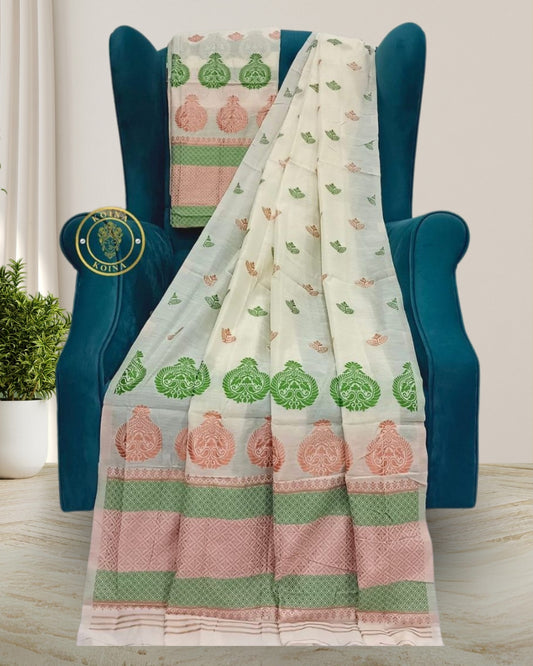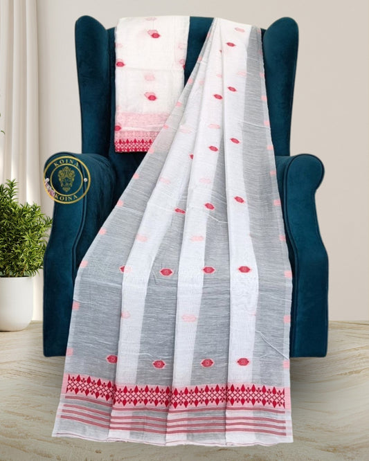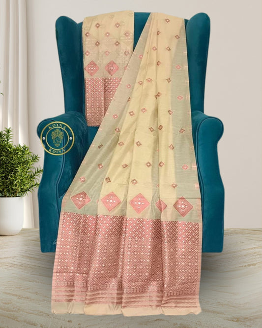Ash padmini cotton Mising mekhela sador - DMC motif work