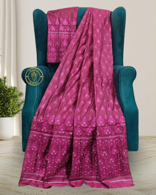 Baby pink semi nuni Mising mekhela sador - DMC motif work