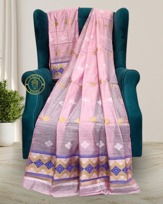 Baby pink Tussar silk by Mulberry silk mekhela sador (Pre-booking available)
