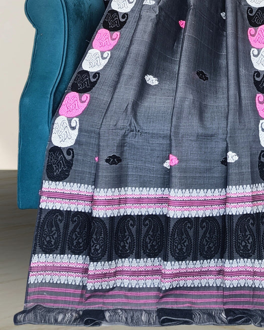 Kesapaat cotton mekhela sador - Onyx grey