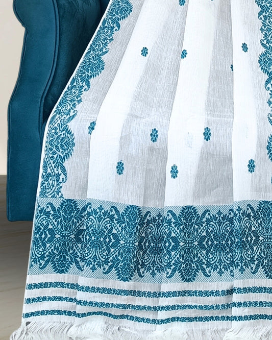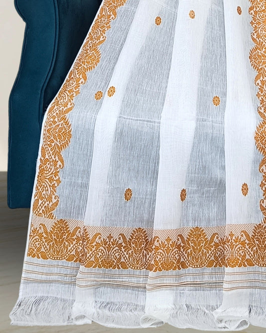 White kesapaat cotton mekhela sador