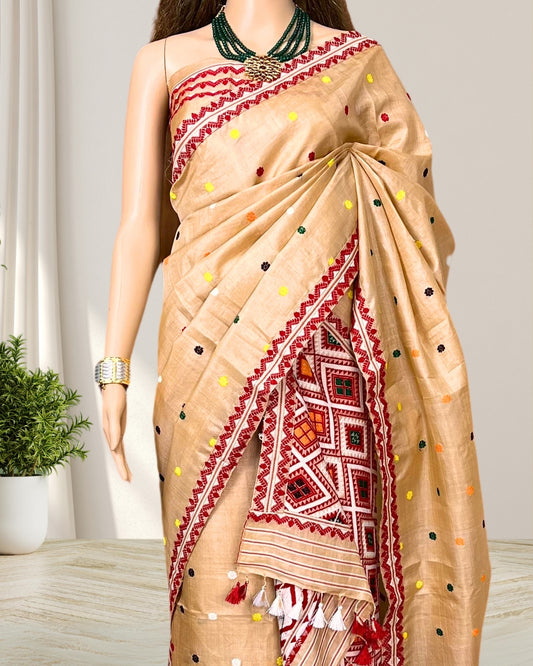 Tussar silk mekhela sador in Mising gero style motifs (Pre-order available)