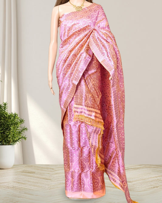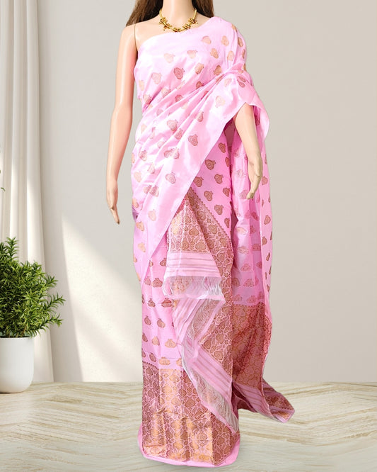 Pink pure Mulberry silk mekhela sador