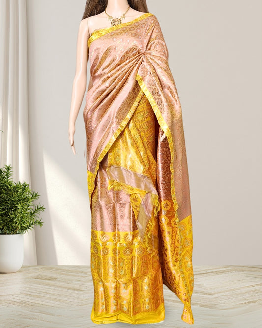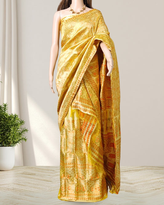 Golden yellow pure Mulberry silk mekhela sador