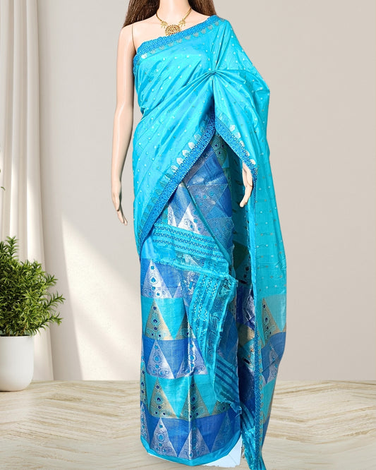 Blue pure Mulberry silk mekhela sador