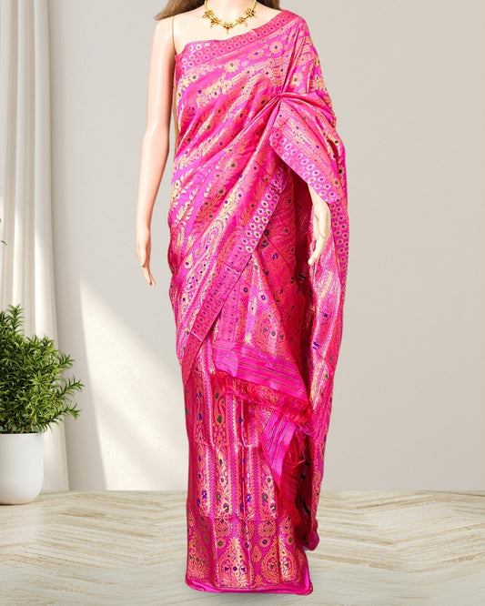 Magenta pink Mulberry silk mekhela sador