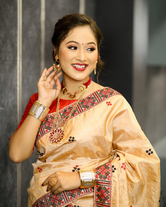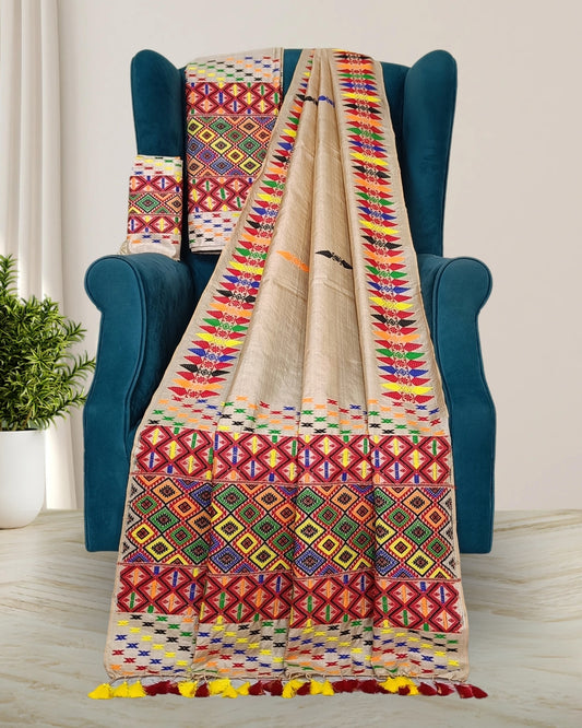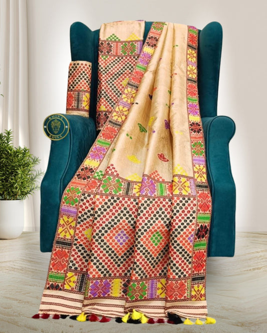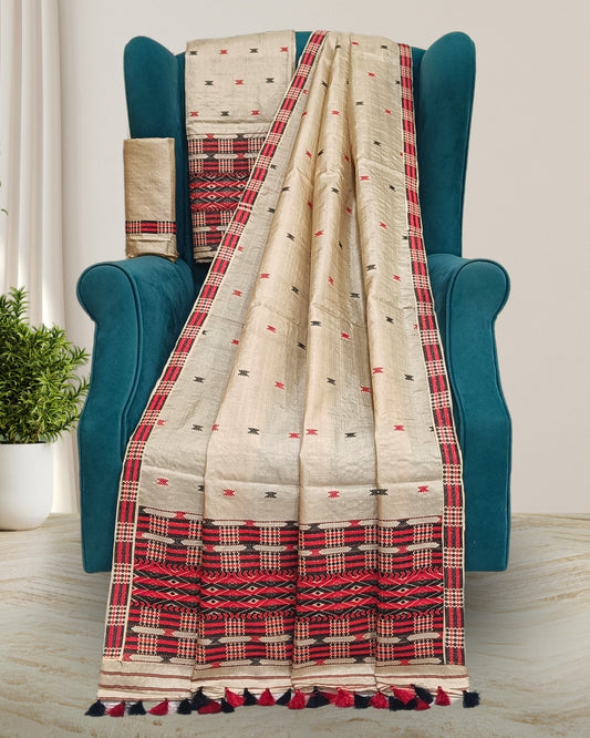 Tussar silk mekhela chadar in Mising tribal design