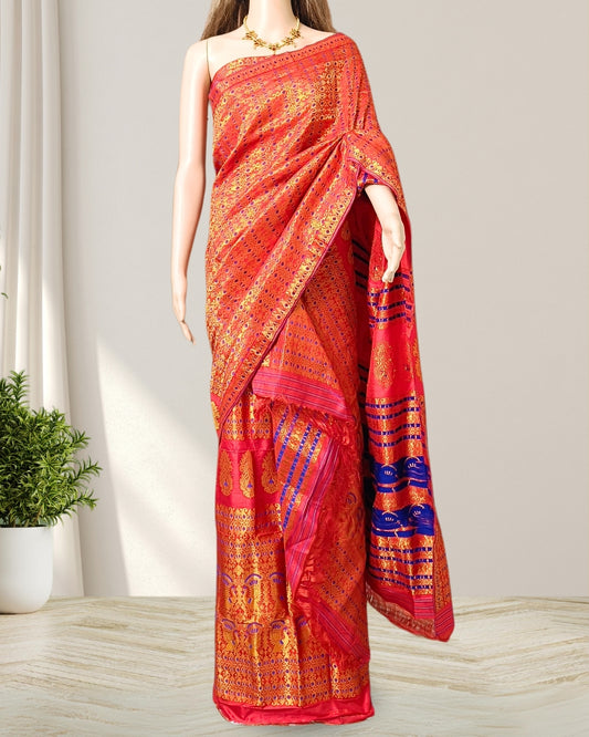 Red pure Mulberry silk mekhela sador