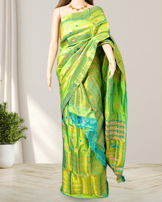 Parrot green Mising mekhela sador