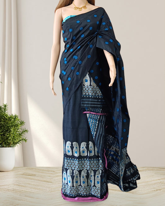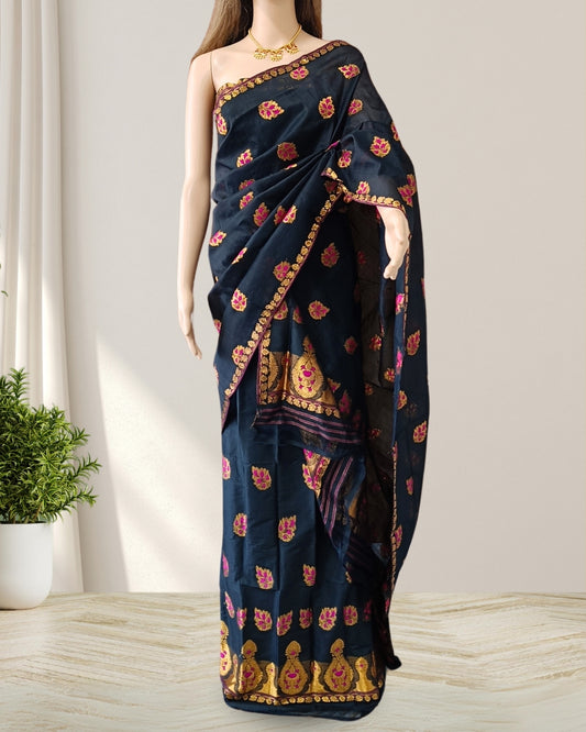 Black Pure Mulberry silk mekhela sador