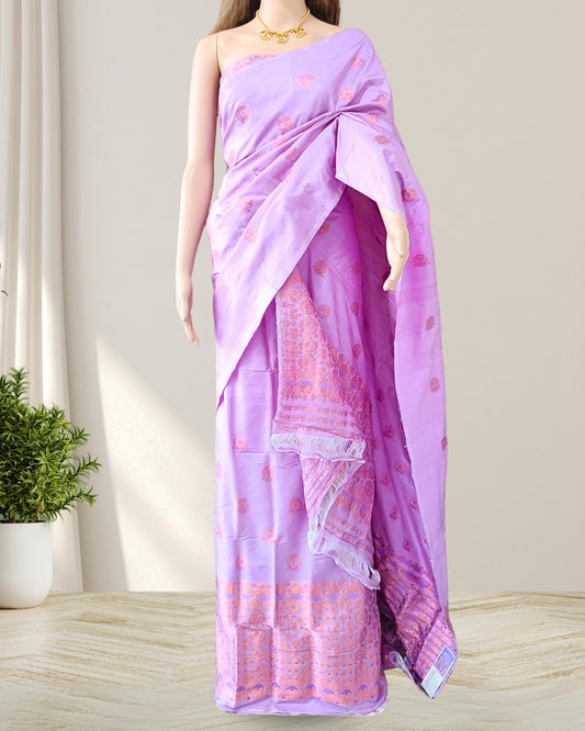 Lavender Pure Mulberry silk mekhela sador