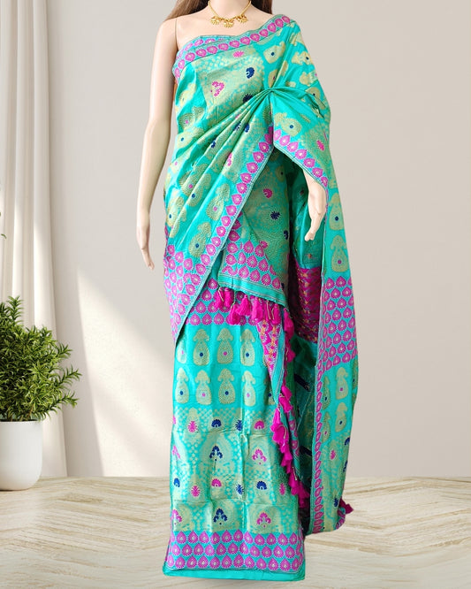 Turquoise Pure Mulberry silk mekhela sador