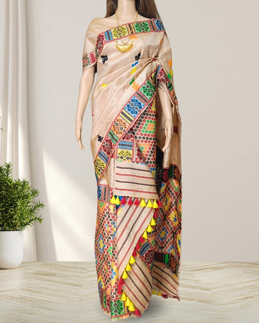 Tussar silk mekhela sador in Mising tribal design (Pre-order available)
