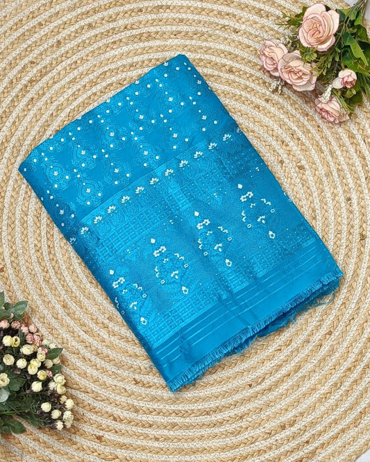 Semi paat mekhela sador - Aqua blue