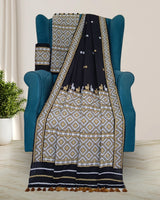 Black padmini cotton mekhela sador with designer motifs