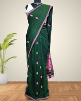 Bottle green pure cotton saree with designer motifs