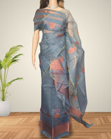 Dyed nuni mekhela sador - Steel grey