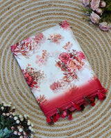 Printed linen mekhela sador set with blouse piece (Ready to wear)
