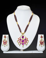Purple mina worked Assamese jewellery set crafted with expert precision using high-quality copper. It is built to last, thanks to its durable Gold plating over copper base, and comes with a generous 6-month warranty for the gold polish.