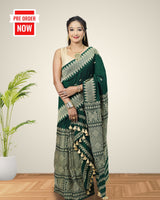 Forest green padmini cotton mekhela sador with designer motifs