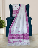 Semi paat mekhela sador - Pearl white