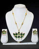 Lotus design jewellery set crafted with expert precision using high-quality copper. It is built to last, thanks to its durable Gold plating over copper base, and comes with a generous 6-month warranty for the gold polish.