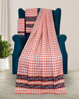 Design: Features traditional Mising tribal motifs, on Pajok (chequered) pattern fabric work