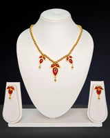 Paat design traditional Assamese jewellery set with golden beaded necklace, crafted with expert precision using high-quality copper. It is built to last, thanks to its durable Gold plating over copper base, and comes with a generous 6-month warranty for the gold polish.