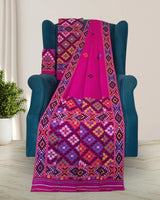 Pink padmini cotton Mising mekhela chadar - DMC motif work