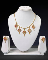 Premium stone worked barfi design jewellery set, crafted with expert precision using high-quality copper. It is built to last, thanks to its durable Gold plating over copper base, and comes with a generous 6-month warranty for the gold polish.