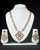 Taditional Assamese Barfi design multicolour jewellery set crafted with expert precision using high-quality copper. It is built to last, thanks to its durable Gold plating over copper base, and comes with a generous 6-month warranty for the gold polish.