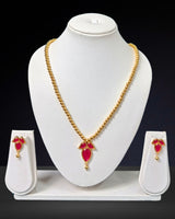 Paat design traditional Assamese jewellery set with golden beaded necklace, crafted with expert precision using high-quality copper. It is built to last, thanks to its durable Gold plating over copper base, and comes with a generous 6-month warranty for the gold polish.