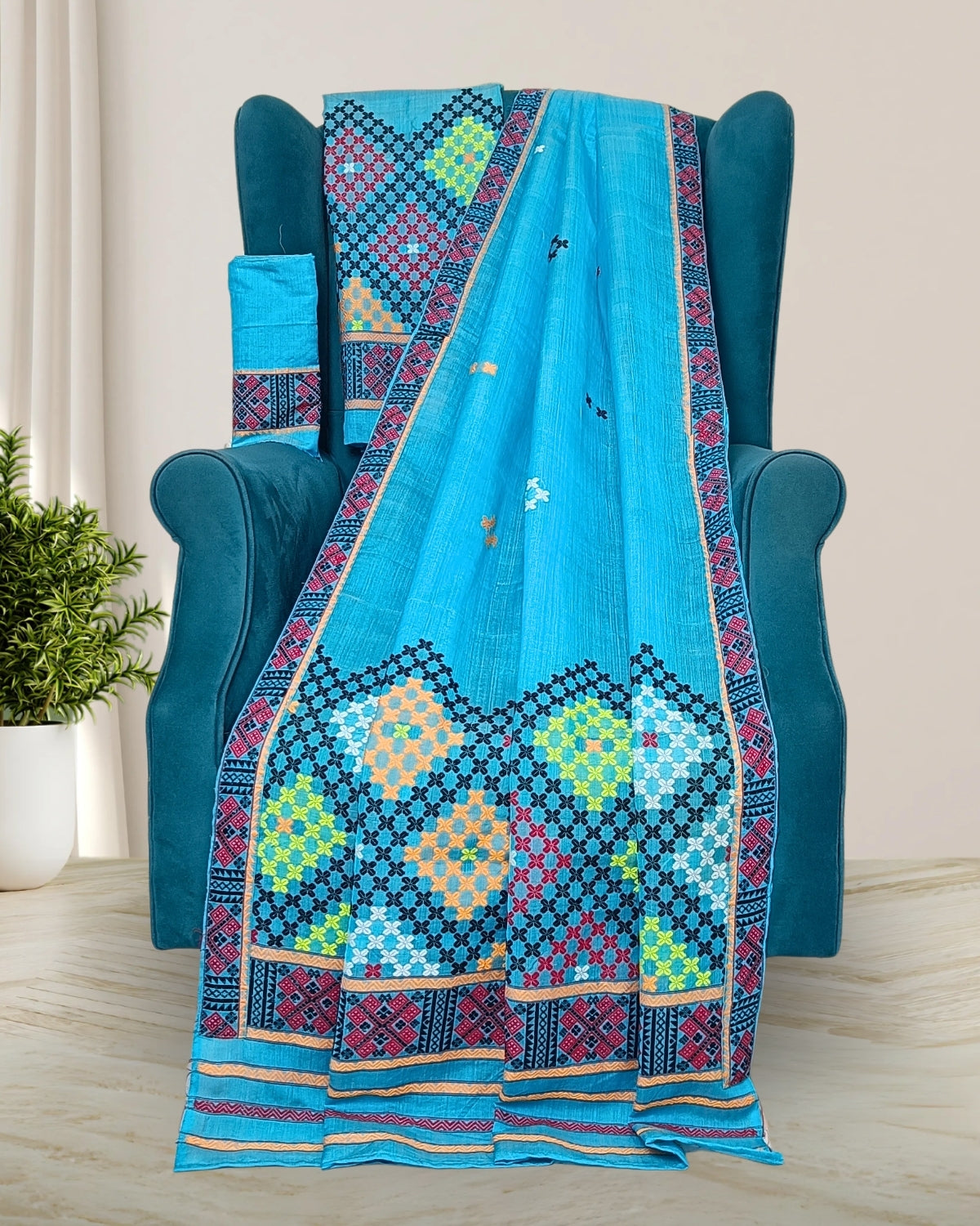 Sky blue semi nuni Mising mekhela sador