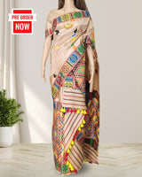 Handwoven traditional Assamese mekhela sador with intricate Mising tribal style motifs