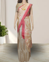 Semi paat mekhela sador - Pearl white