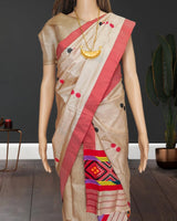Barfi design pure tussar silk (Toss) single sador - Mising handloom